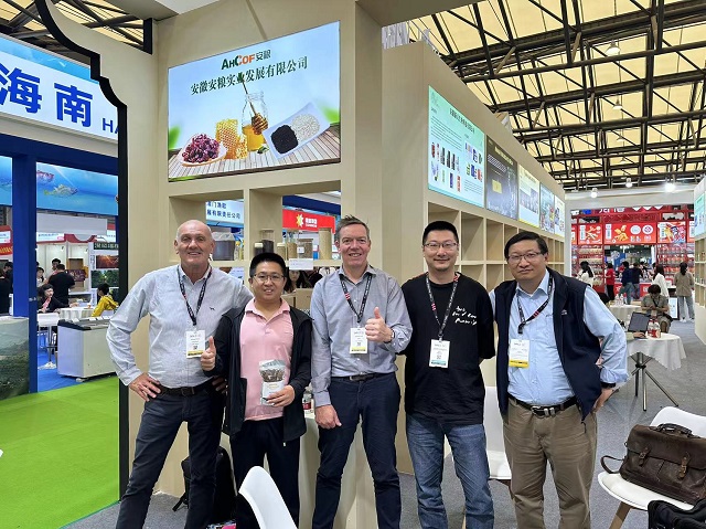 (业务人员在展会期间与澳大利亚果干协会主席����� �������Ƴ������������ �������Ƴ������������ �������Ƴ������������ �������Ƴ�������洽谈合影)